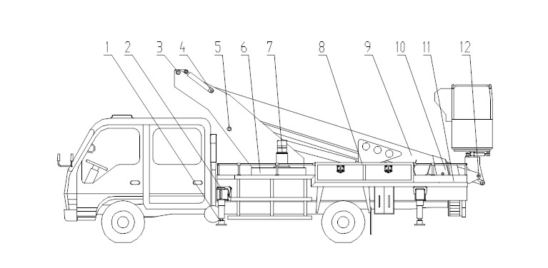 11、作業時增加迎風面積會導致車輛有傾翻的危險,因此工作時不得在平臺上設置板牌,插旗幟等。